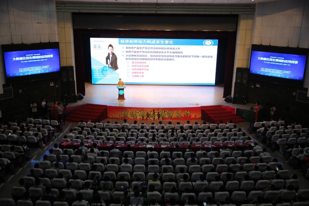 会上,围绕大数据与智慧城市的最新应用成果与发展,电子科技大学大数据研究中心主任周涛、Standata成都智信公司联合创始人/CEO陈曦、神州控股咨询总监刘文金、神州医疗咨询总监刘鎏分别作演讲,向700余名文教卫系统干部职工和我校师生普及大数据与智慧城市的理念与内涵,介绍新型智慧城市操作系统在民生领域的应用实践。