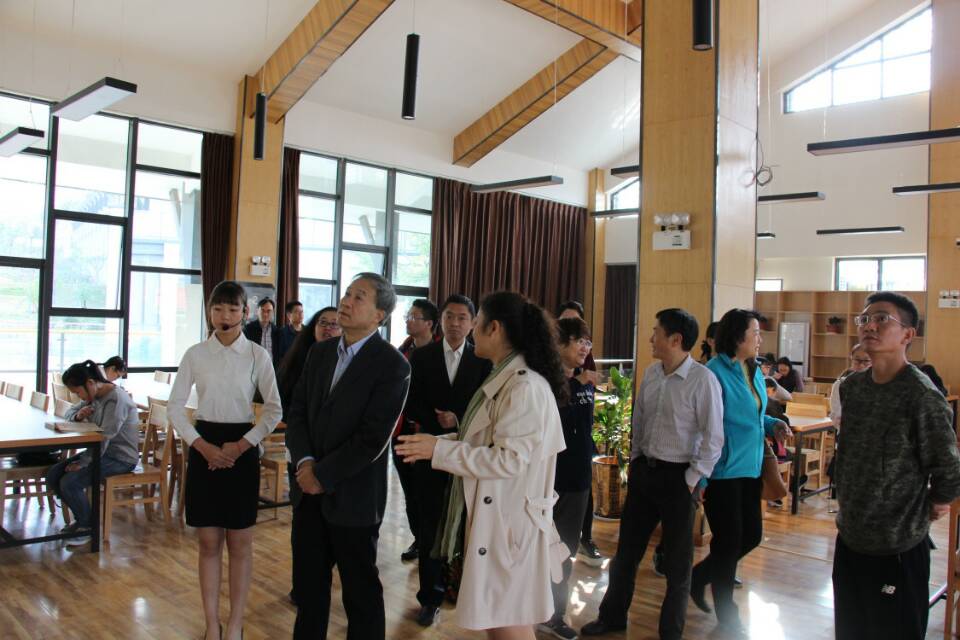 | 许剑毅(左二)一行现场查看康养学院图书馆 |