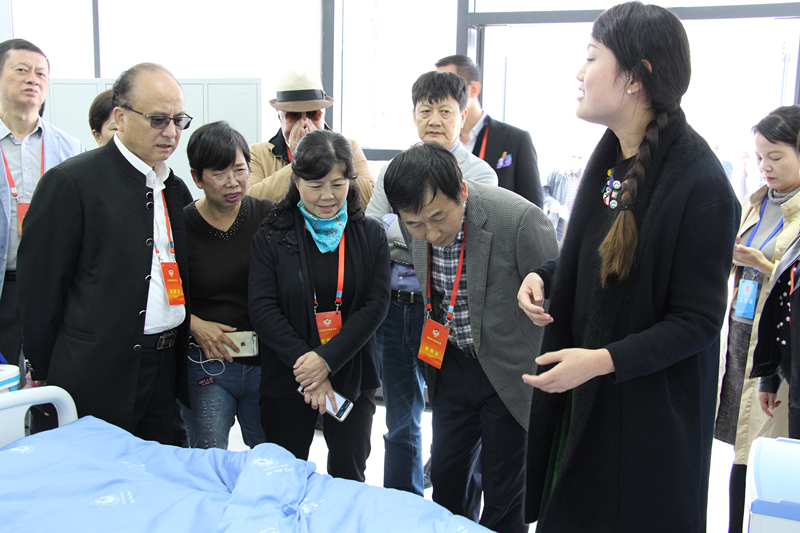 | 陈文华(左二)一行现场查看康养学院护理实训中心 |