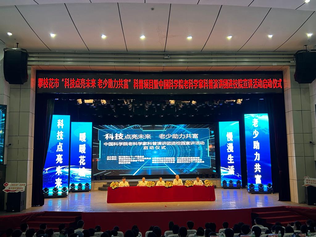 为助力我校学生进一步提升科学素养,丰富科学知识,激发科学兴趣,探索科学未知,传承科学精神,点亮科技未来。4月15日,中国科学院老科学家科普宣讲活动走进攀枝花学院,本次活动由市关工委执行主任谢道全主持,市政府党组成员、副市长龙勇致辞,校党委书记胥刚,省关工委副主任、省关心下一代基金会理事长刘华军分别代表承办和主办方讲话,2000余名师生共同参与。活动采用“1+6”方式即一个主会场加上六个分会场的形式开展。