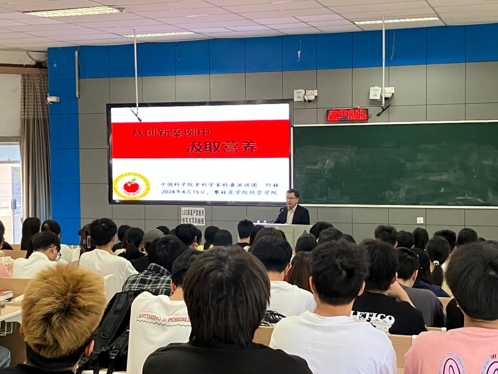 中国科学院文献情报中心三级职员,何林教授以中国科学院十余位科学家的创新案例为基本素材,阐述了科学技术对中国式现代化发展的重要性,让同学们明白了科学研究不仅需要自主创新的能力和魄力更需要勤奋刻苦、坚韧不拔的品质和毅力,鼓励我校学子在学习和生活中攻坚克难,勇往直前。