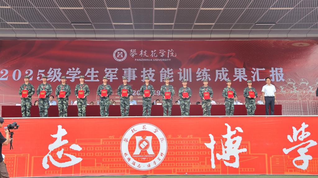 钒钛学院退役大学生宋涛作为优秀教官代表发言。他表示,军训是教官与学员的双向锻造、同步提升,愿同学携吃苦精神与纪律意识登知识高峰,化底气为力量。