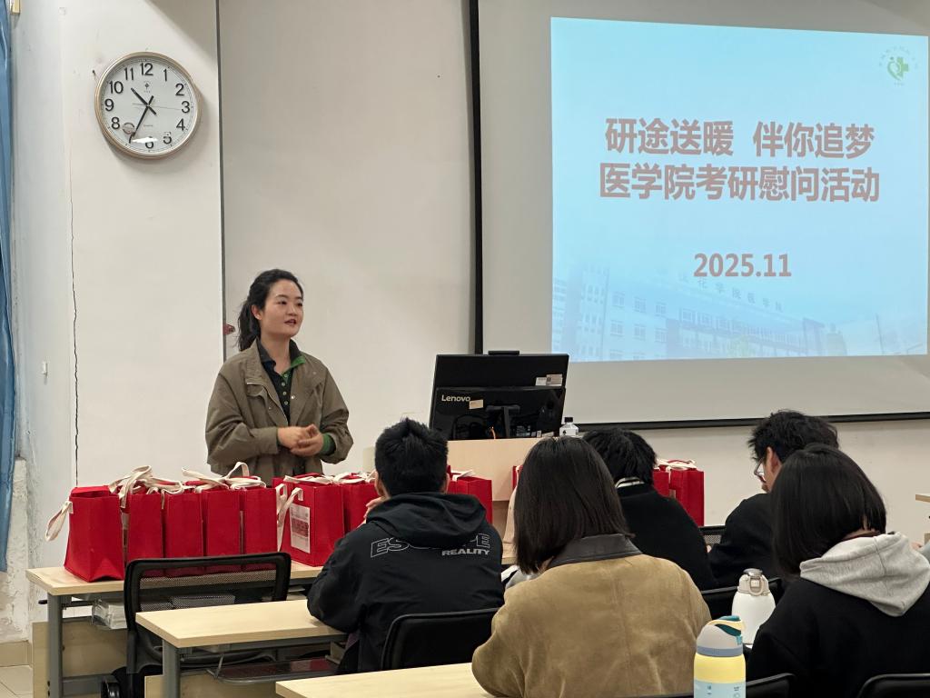 寒冬送暖传真情,研途鼓劲显担当。11月21日,基础医学院党委书记王鹃、副书记任娟带队,教师代表、学生科科长及毕业班辅导员组成慰问组,专程前往医院看望正在全力冲刺的2025届考研学子,以暖心关怀、务实举措为青春逐梦之路保驾护航。