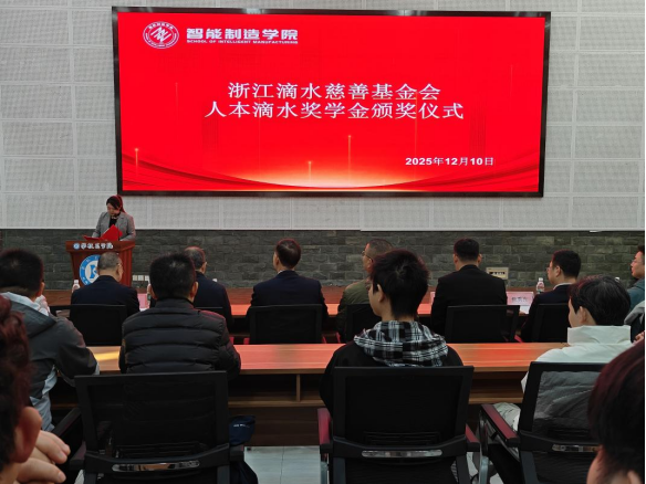 智能制造学院党委书记刘东康总结时强调,他强调,奖学金不仅是物质上的奖励,更是精神上的激励与鞭策。希望全体学子牢记嘱托,常怀感恩之心、常立奋进之志,在青春的赛道上奋力奔跑。同时期待与人本股份有限公司、浙江滴水慈善基金会继续深化合作,携手为培养更多高素质应用型人才、推动教育事业高质量发展贡献力量。