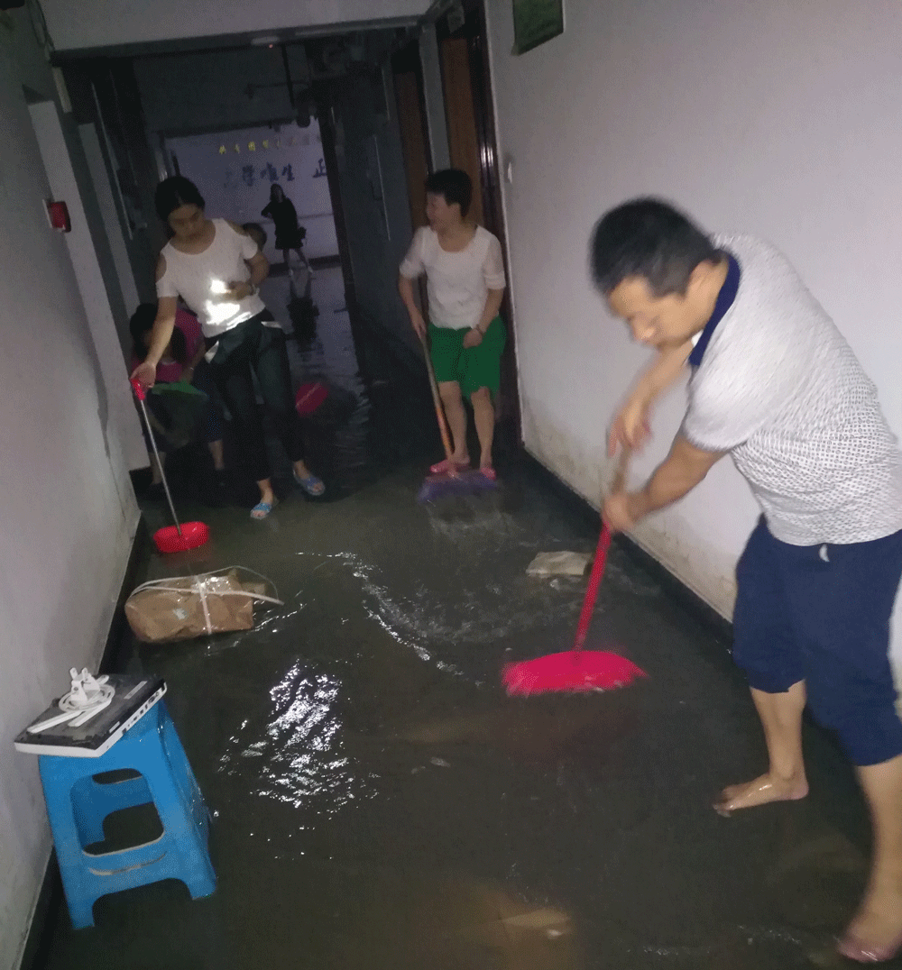 30日上午,继教学院负责人组织部门全体教职工进行排水抢险救灾。大家在光线昏暗的房间,经过2个多小时的不懈奋战,最终将雨水及淤泥清除干净。