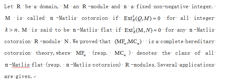 题  目:n-Matlis cotorsion modules and n-Matlisdomains